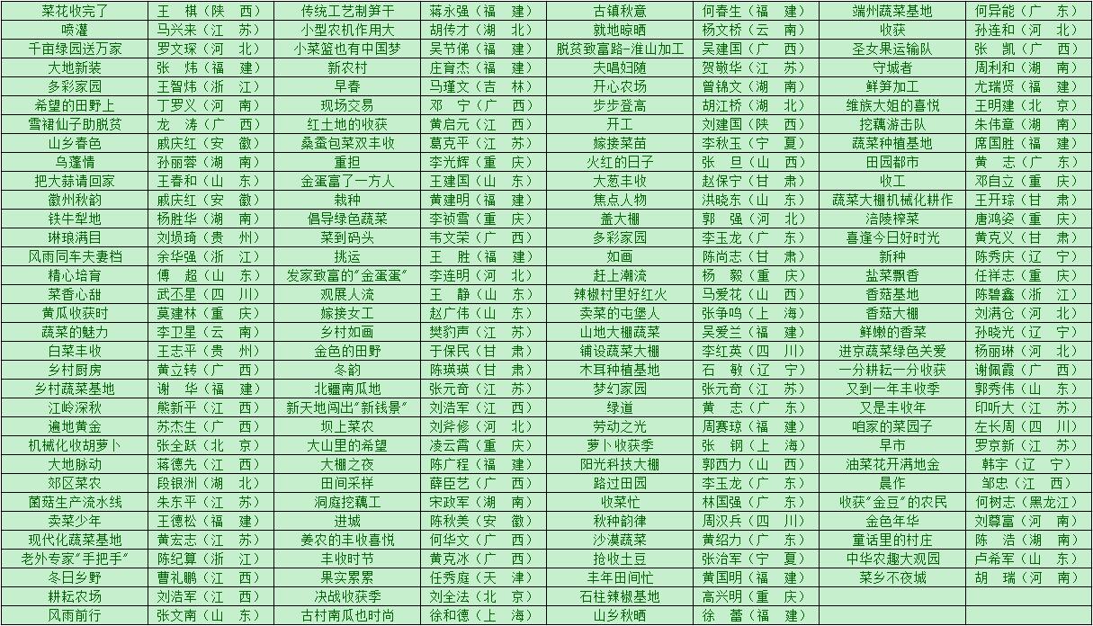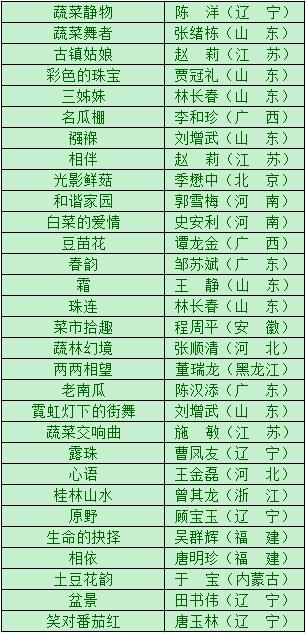 第四届中国蔬菜摄影大赛获奖名单如下: